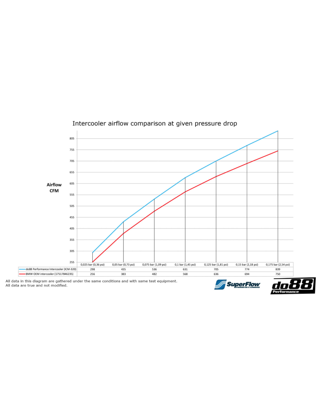 Our performance intercooler gives your engine more power by reducing both the intake air temperature and the pressure drop! It is a rod and plate unit with 3D free-form end tanks that are TIG-welded to the core. It has a core volume that is 85% larger than the standard charge air cooler and outperforms the standard unit in terms of both airflow and cooling efficiency. 16% better flow and 9 ° C lower IAT, so with both better flow and lower IAT this is a real upgrade!
