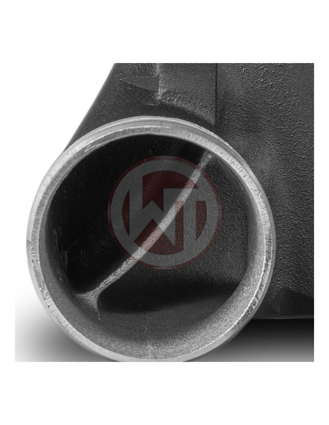This Competition Intercooler has the following core size (640mm x 410mm x 65mm), providing 90% more volume compared to the original intercooler. Our engineers have increased the intercooler core size and efficiency, as well as improving the endtank design to remove any OEM bottlenecks, resulting in increased flow rating and charge cooling properties. This Golf MK7 intercooler uses our award winning WAGNERTUNING competition intercooler core which is made specifically for this application. Constructed of the highest quality tube and fin intercooler cores with inside turbulators combined with cast aluminum endtanks optimized by CFD for best possible internal airflow. With the help of additional air guides, inside inlet, an uniform filling of the intercooler is provided. The result is excellent cooling properties and a lot less pressure drop then the stock intercooler. Despite of it´s size the weight of the complete intercooler is only 8,9kg. The inlets and outlets of the intercooler have been increased to Ø 70mm, so this kit comes with reinforced silicone hoses. This Intercooler Kit is the best choice when it comes to performance gains and low intake temperatures and also the right thing for racing. All of our intercooler use an anti corrosion protective coating with perfect thermal heat dissapating character. Optimal cooling with clearly more power. Kit is ready for installation, 100% perfect fit. Fitment is easy, replacing the OEM intercooler. All of our products undergo rigorous quality control.